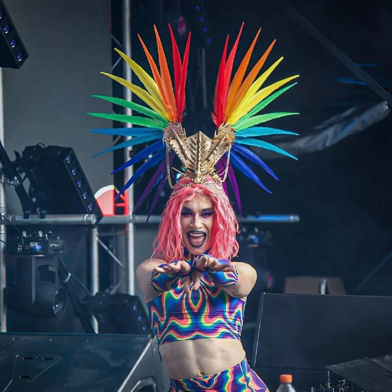 This fierce queen Keta Minaj is rocking my Mad Max meets Pride headdress at the mainstage of Pride Amsterdam 2023.