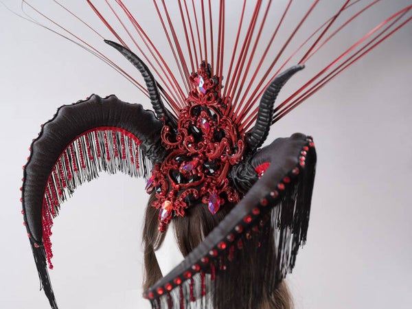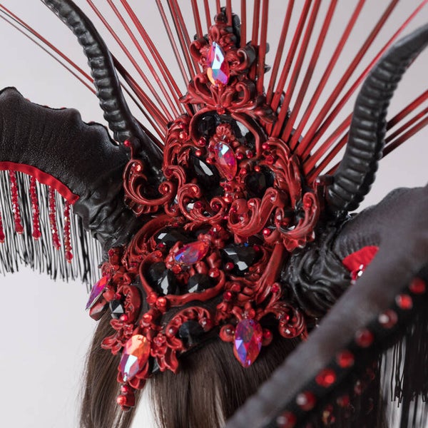 Ignite the flames with the daring allure of Lilith. Crafted for the bold and the fearless, this headpiece exudes an air of dangerous love and mysterious intrigue. Adorn yourself with its seductive charm and embrace the darkness that lies within the journey of forbidden desires and thrilling escapades.