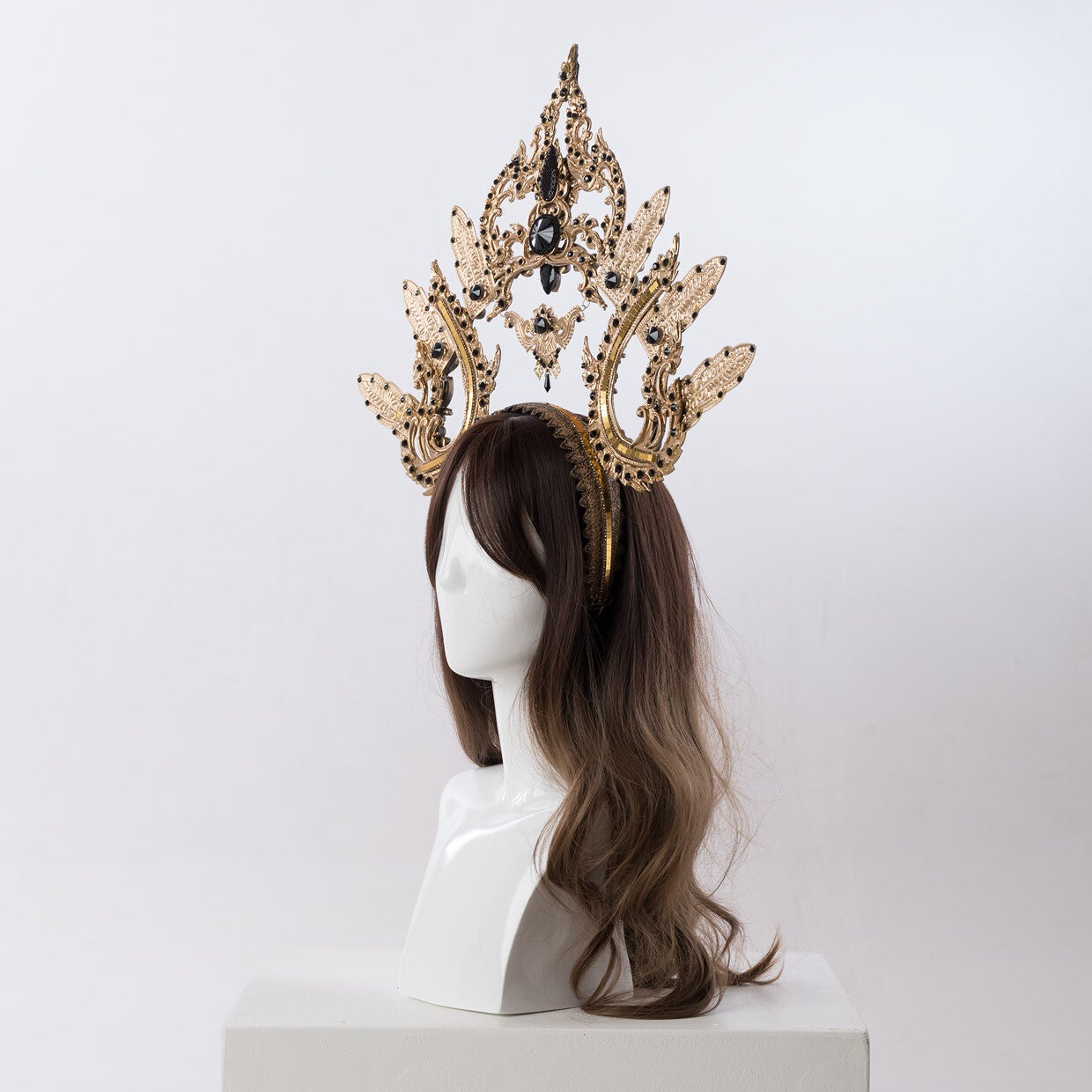 Embrace royalty with Kiya, a majestic fusion of elegance and splendor. Featuring exquisite black rhinestones set against radiant gold, it embodies regal sophistication. Channel the spirit of Empress Kiya and command attention with this timeless symbol of power and beauty.
